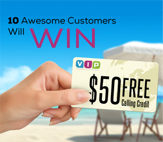Each Thursday, a customer is randomly chosen as the “VIP Fan of the week” and receives $10 FREE calling credit. The chosen customer is asked what they like best about VIP and/or what VIP service do they like the most. Their answer and profile is featured on our timeline for all of our VIP fans to see.